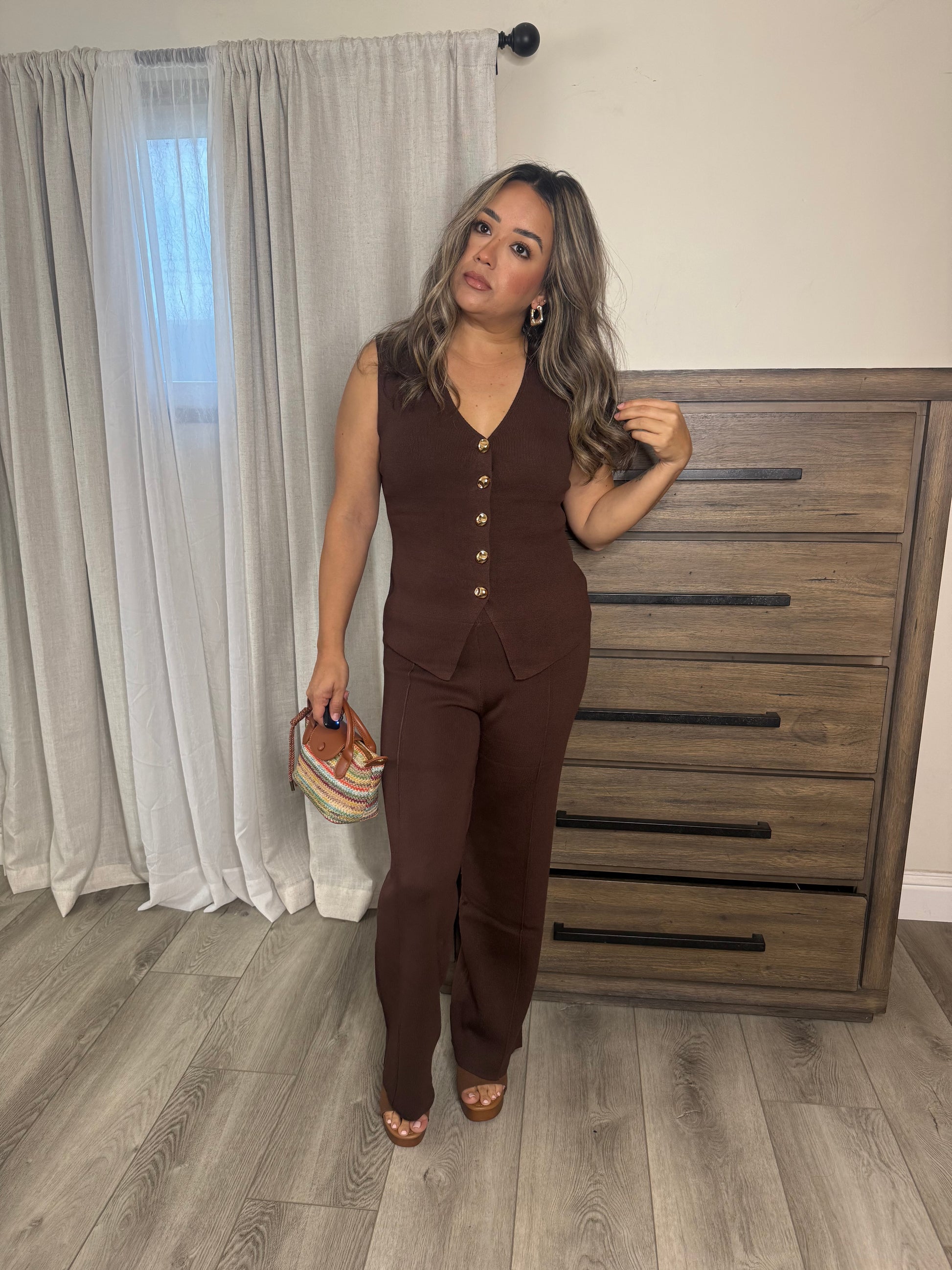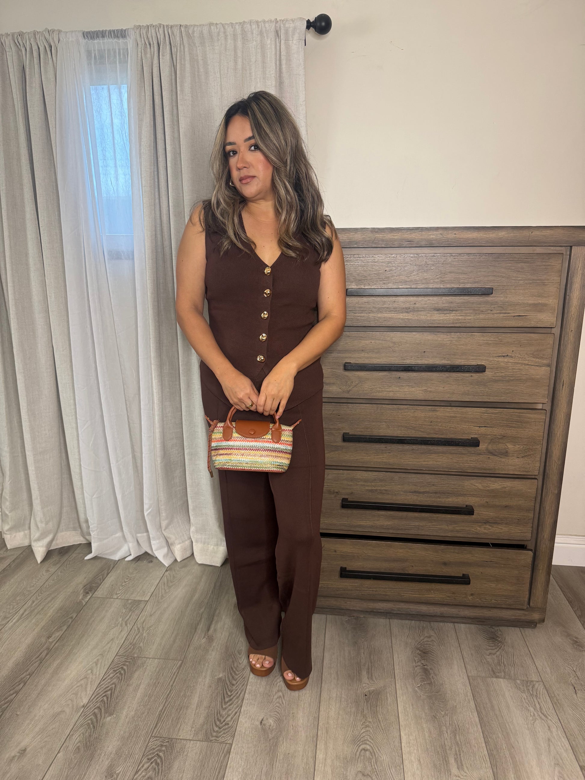 Solano Two Piece Pant Set- Chocolate
